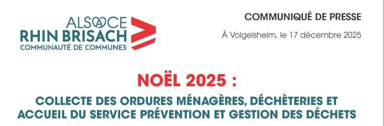 Le Service Prévention et Gestion des Déchets est fermé au public du mercredi 24 décembre au vendredi 26 décembre 2025 inclus (fermeture physique et téléphonique).